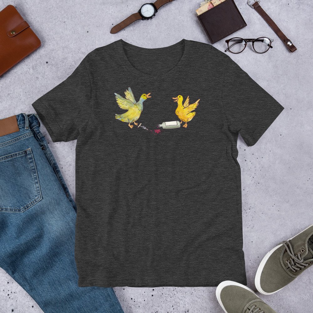 Some call it chaos. We call it chemistry. This shirt says everything without saying a word—two watercolor ducks, one bottle of wine, and a corkscrew situation that got wildly out of hand.